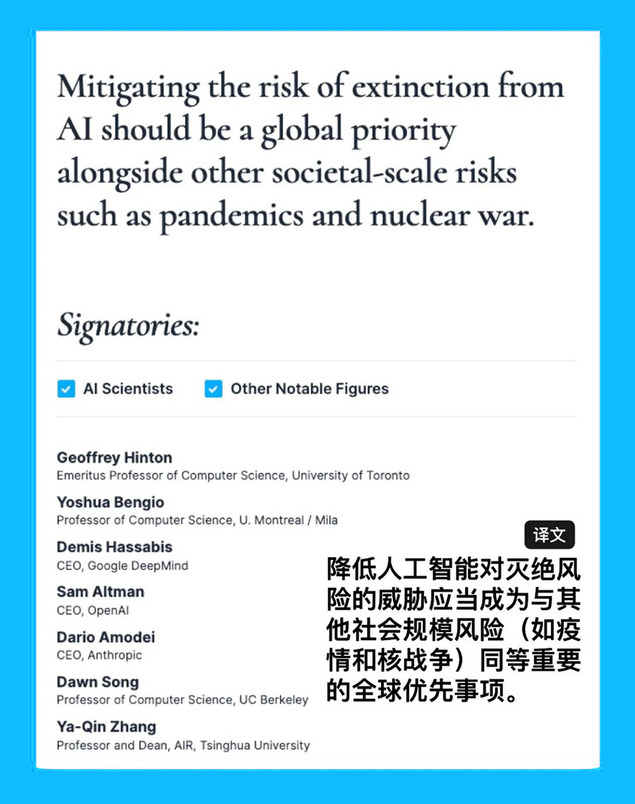 二是使用 AI技術可能會使人類處于危險境地,最終導致“AI滅絕人類”。